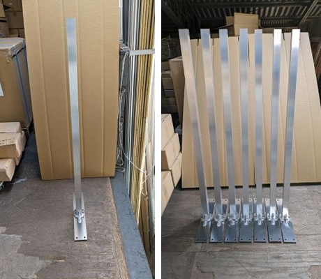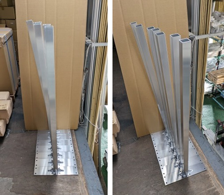 角パイプを角度切りし、三角の補強板を取り付けています。角度は7本それぞれ違っています。