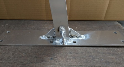 長方形に切断したアルミ板の中央に角パイプを浴接した物で、弊社ではよくあるアルミ溶接部材です。