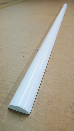 水口さんに使用用途を確認すると、半円状に曲げられた部分に他のアルミ部材が重なりその部材自身がR部分に沿って曲げられ、曲線を描く商品になります。