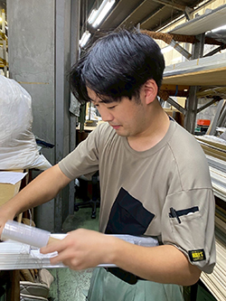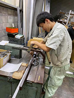 切断後の材料をお客様のために物件名等書き仕上げの用意