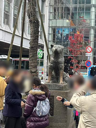 ハチ公の像の周りはたくさんの観光客でにぎわっていました。