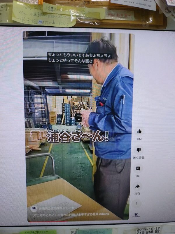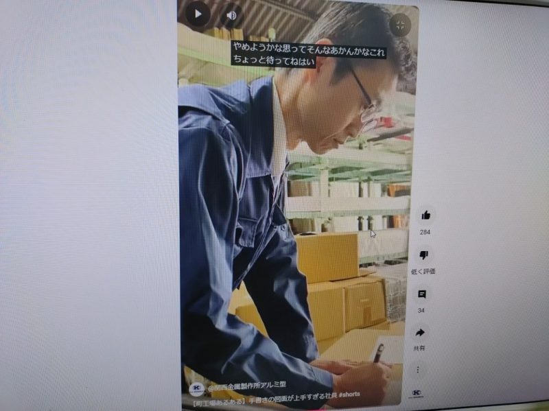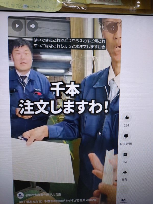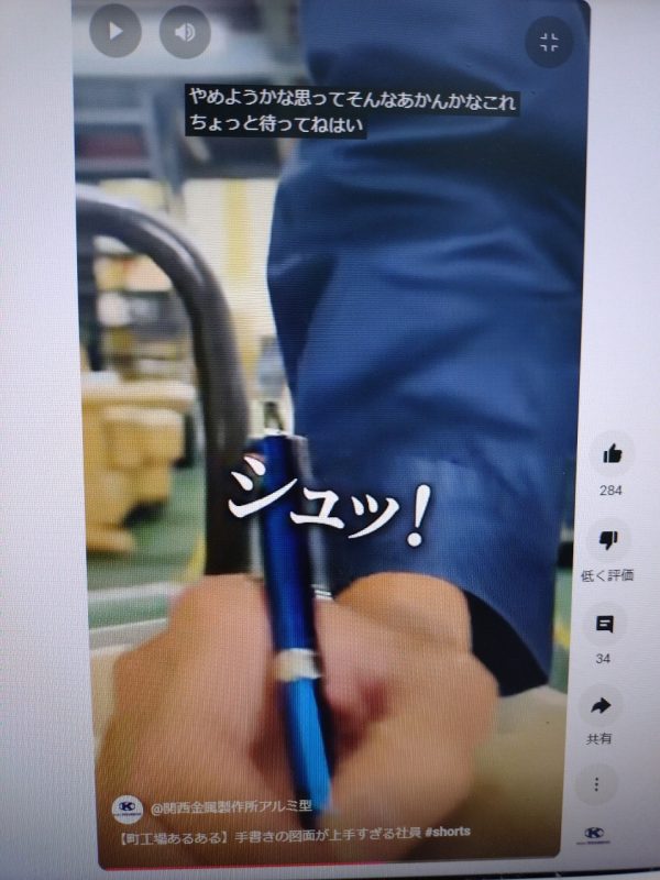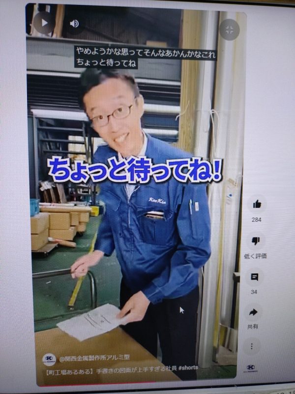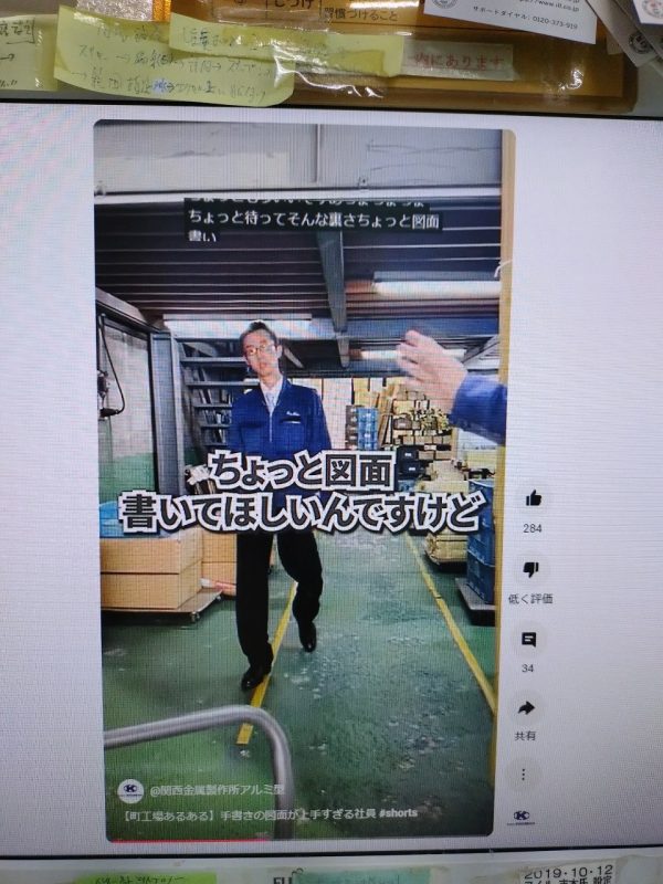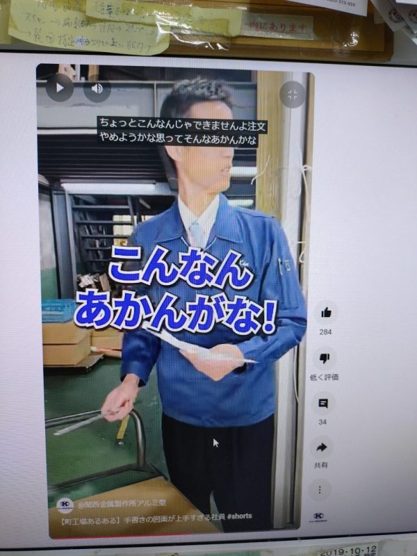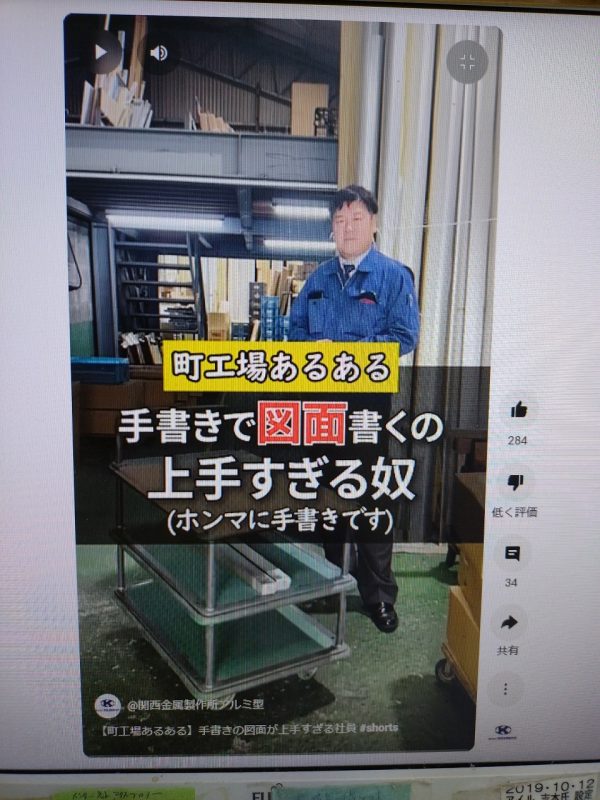 あれ?私の後ろのPCの画面には関西金属製作所が誇るお笑いコンビ浦谷課長と大西課長のYoutube 第八弾がUPされているではないですか!(わざとらしくスミマセン)今回は人間CADと呼ばれている浦谷さんの登場です。