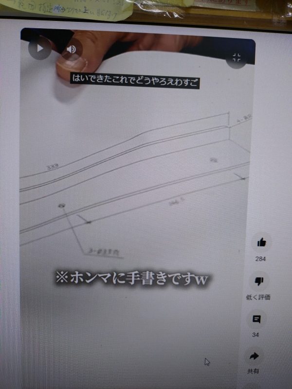 大西さんが書いた下手な図面(わざとですよ!)をお客様から拒絶されたのを浦谷さんが見事に手書きする図面が登場