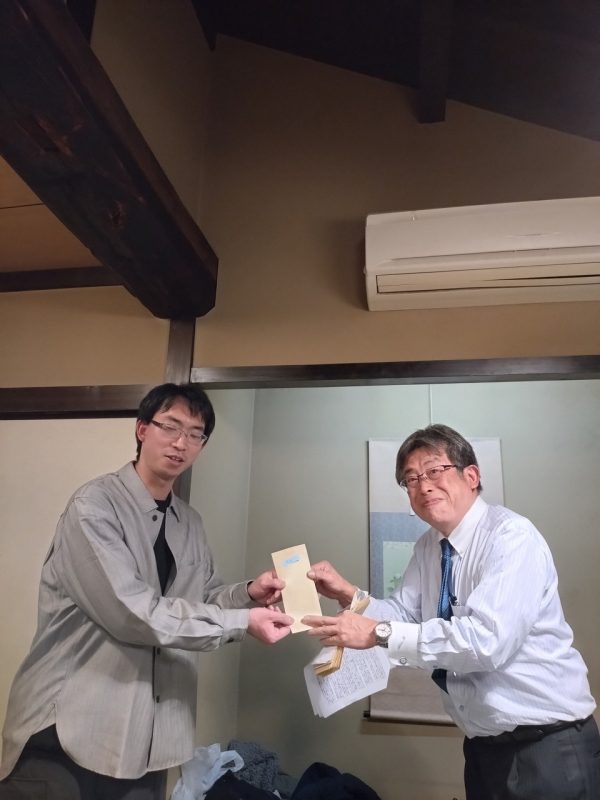 例年なら ここから「2024年私の目標」上位三名の発表なのですが・・・今年はここで《特別功労賞》二名の発表がありました。その二名とは今年の5月から関西金属製作所を知らしめるべく活動を開始した営業部≪関西金属製作所が誇るお笑いコンビ 浦谷課長&大西課長≫ その二人が繰り広げるYouTubuの活動に対しての功労賞が贈られたのであります。