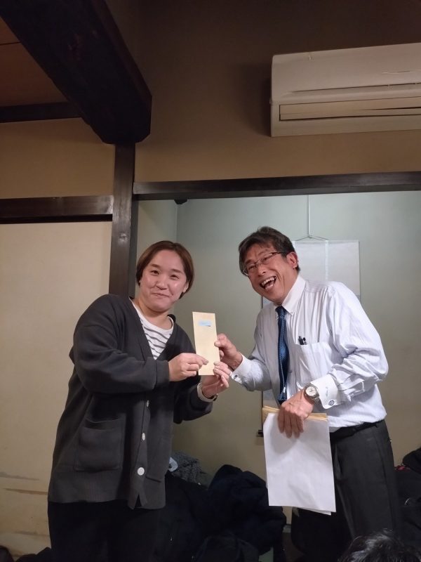 2位はなんと3位の深井さんに一時は抜かれる場面もありましたが構想一年製作一週間の彼に神様は2位与えませんでした。材料高騰に伴う利益低を少しでもカバーすべく営業管理として奮闘した中田さんが2位を獲得 キャッチコピーは【目配り・気配り・心配り 関金のナイチンゲール】 です