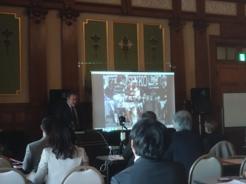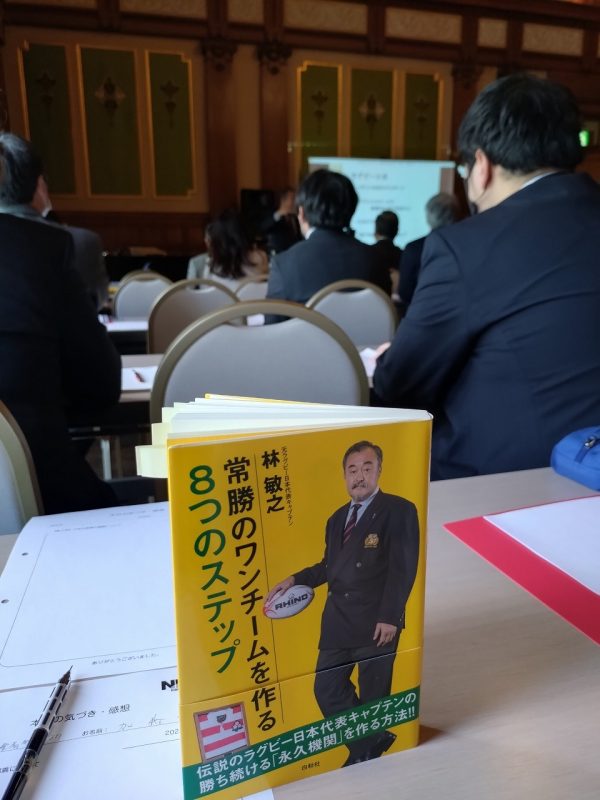 実は お二人の発表の前に基調講演として元ラグビー日本代表キャプテン(神戸製鋼キャプテン)の林敏行さんのお話をお聴きしました。