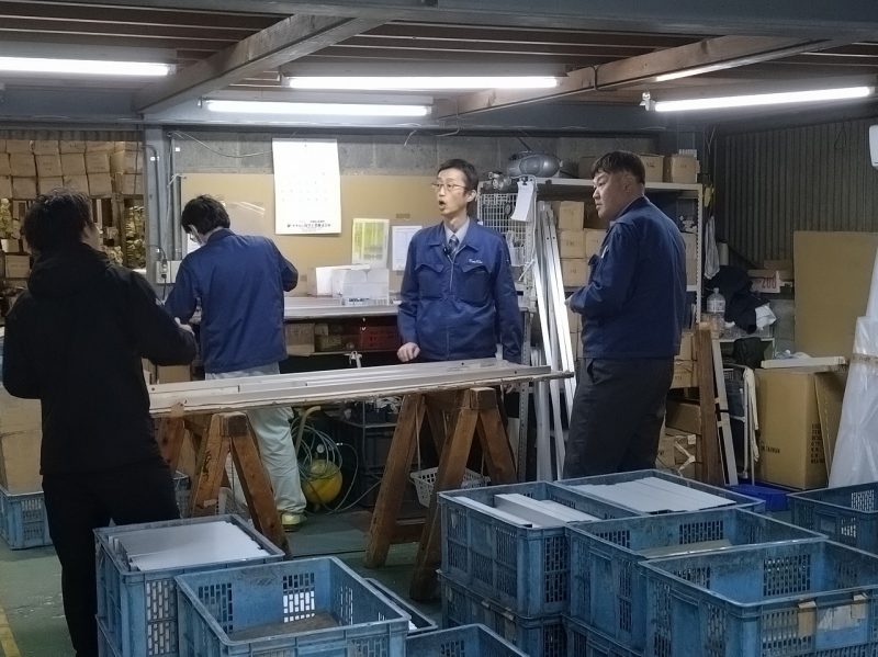 続いてはアルミ材を手にしながらの何か組み立て?している様子を撮影しているようですね!