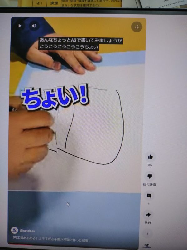 人間CADの名称を持つ浦谷課長の登場し お見事な手さばきの披露 そして実際に図面に基づいての組立看板への製作へ話は展開していくのであります。