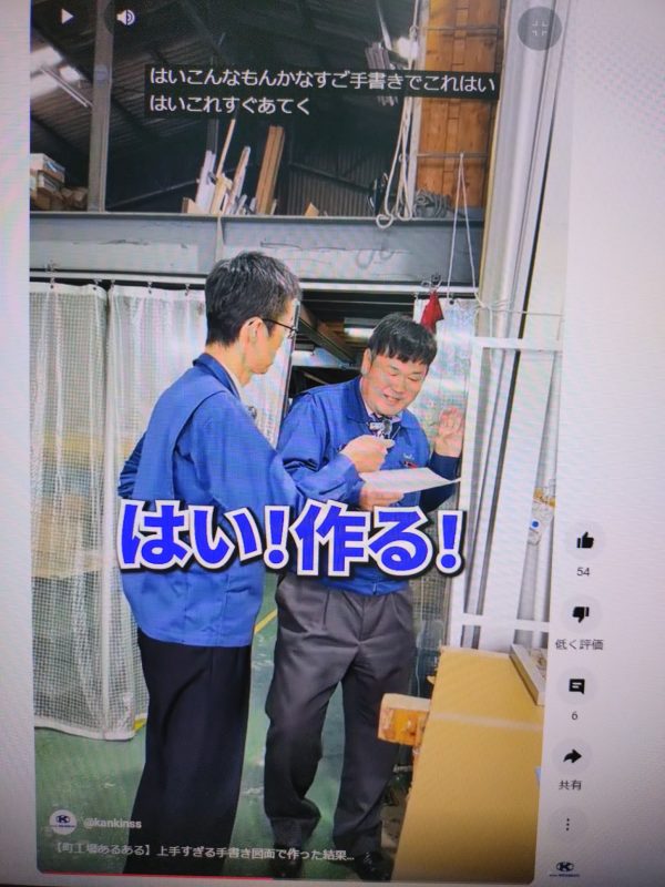 どうやら今回は第八弾で好評でした 浦谷営業課長の人間CADを使って実際にモノづくりをしているところを紹介する動画のようです