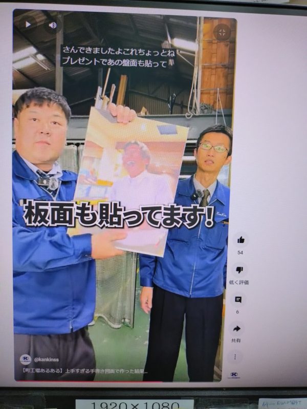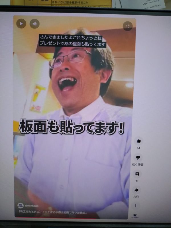 板面に使用されているのが なんとなんとなんと 私ではありませんか!!第十二弾にしてようやく登場させてもらえました。ただし動画にもかかわらず静止画ですが(笑) お客様から間髪入れずこの板面は不要(いらない!)との発言が・・・・