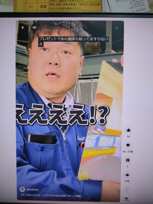 先週の29日(土曜日)は今年に2回目の全社員研修日でした。いつものように開催前に会社によってルーティンワークの会社周辺の掃除を行ってから事務所でPCを操作していると・・・関西金属製作所のYoutube動画がUPされているではありせんか!(毎度わざとらしくスイマセン)