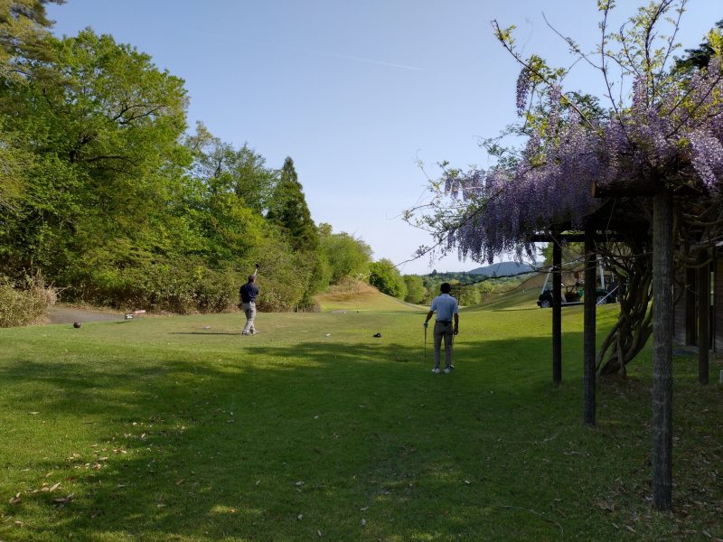 気候がいい季節 新緑がまぶしい季節にぴったりのスポーツの一つが、杖を14本持って山中を駆け運動です。13名のハイキング好きが集まって仕事を忘れてのわいわいがやがや賑やかに動き回ったり山々の緑だけでなく途中にはキレイなふじ棚もあり楽しませていただきました。