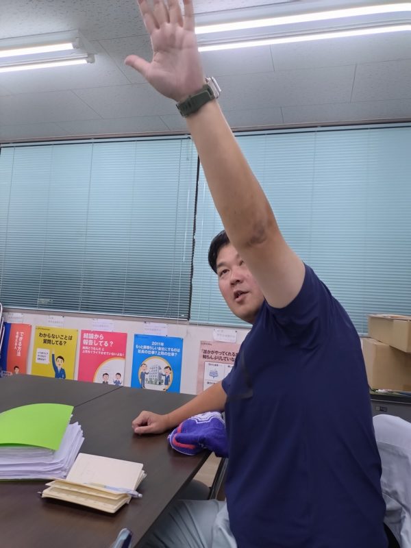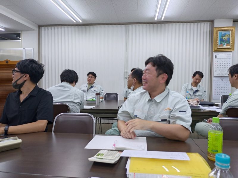 質問も多く飛び出します。珍し私が質問のトップバッターから始まり 元気いっぱいの大西課長 ここしばらく五十肩に悩む水口さんと次々に質問が飛びます