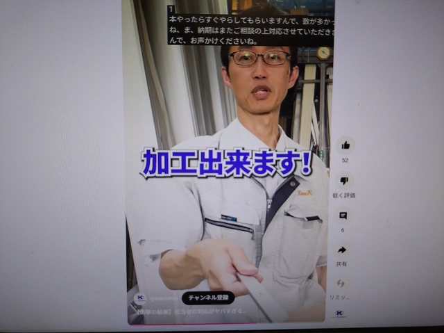 自宅のPCで作業をしていると関西金属製作所の最新のYouTubeが公開されているではありませんか?!(毎度いつもながらわざとらしいですがお許し下さい)
