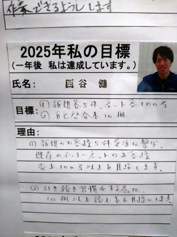 読書発表会 4回目の登場は 【2025年私の目標】で自己啓発本10冊を掲げている営業管理の西谷さん