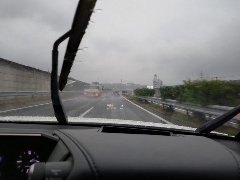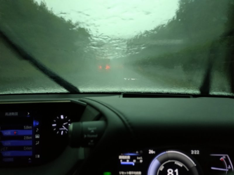 打ち合わせ中に雨が降り出し 打ち合わせを終えて高速道路に乗るころにはそれなりの強い雨がフロントガラスを打ちつけていました。