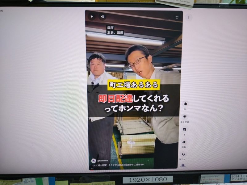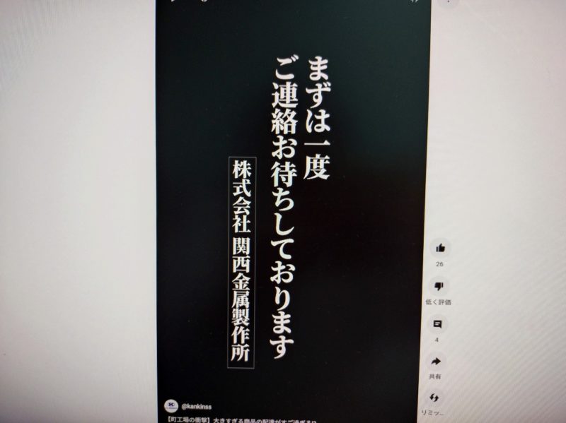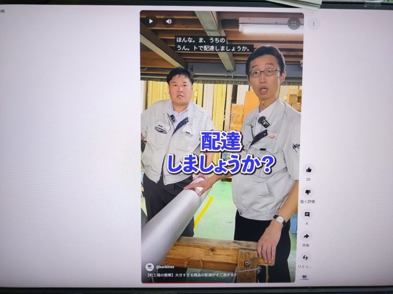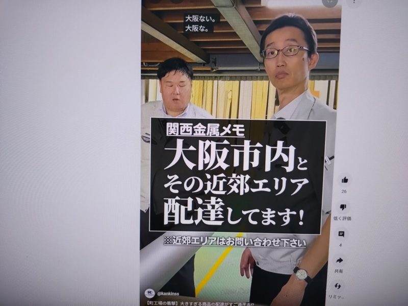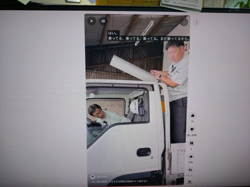 今回も前回・前々回同様に 関西金属製作所のお役立ちバージョンのようです (毎度動画がアップされるまで私は内容を知らされていませんので 笑)。前回はお客様が、急ぎで加工品が必要になり来社された時動画でしたが、今回は関西金属製作所の強みの一つである自社便での配達に関する動画のようです。