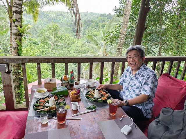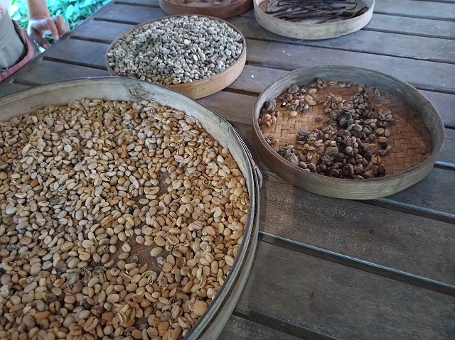 途中私の要望(二人だけのツアーでしたので要望はなんでも聞いてもらえました)でジャングルの中にあるコーヒー農園に立ち寄り 初めてジャコーネコのコーヒーを体験したり、田舎のテラスを見学しランチタイム。 この日は気温30度にもかかわらず私が長ズボンを着用しているのには訳があったのです。
