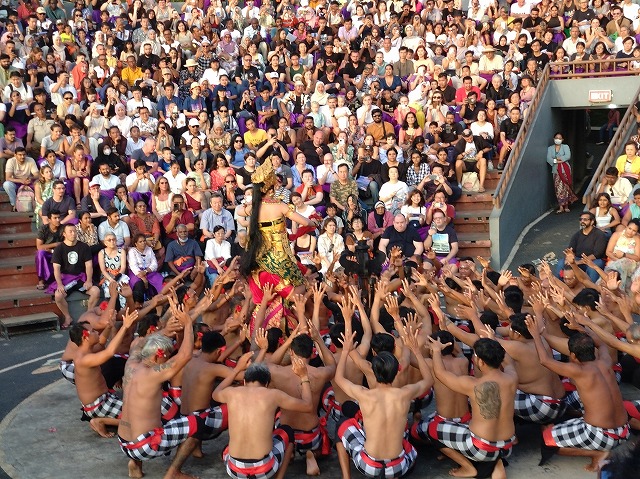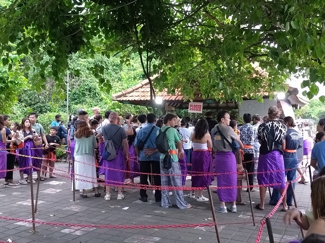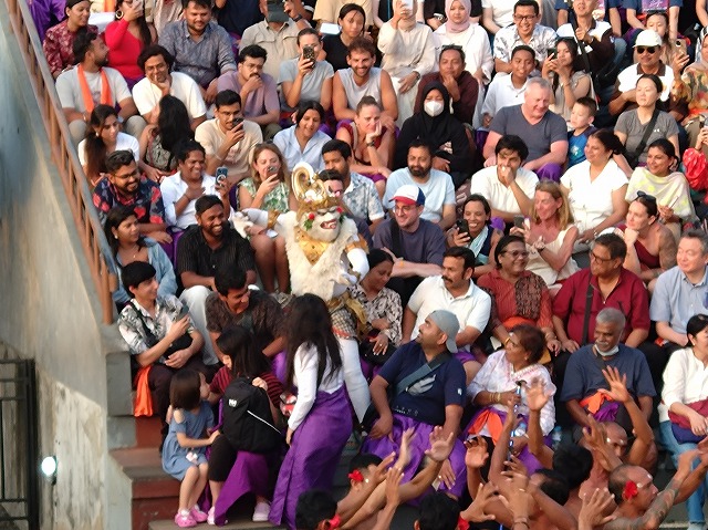 今回の旅でぜひ見たかったダンスは、思っていた以上にエンターテイメントに富んだ笑いありの楽しい踊りでした。このダンス 大人気で見学場所の寺院に到着した時はチェットは売り切れ状態(CLOSEDの看板が出ていました) 事前に日本から予約していて良かった~~(以下の写真で女性だけでなく男性も紫の布を巻いているのは、現地の寺院では宗教上の理由で半ズボンでは入場できないルールがあり布を巻かされているのであります。 私は事前に確認していた為に長ズボンを着用していたのであります)