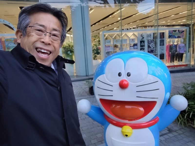2日目の朝はいつも通り早朝ウォーキング 0度近くの中 ホテル周辺をウォーキングです。㈱BANDAIさんの本社ビル前では人気キャラクター達がずらりと並んでいます。今の経済状況ではついついドラえもんの“なんでもポケット 四次元ポケット” が思わず欲しくなりドラえもんと記念撮影してしまいました。