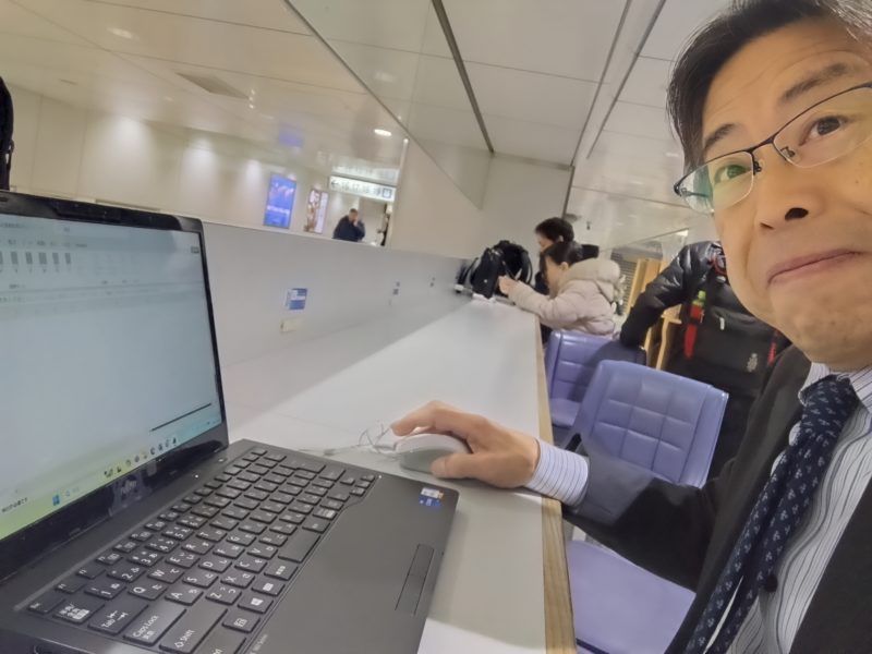 この日は上野のお客様からスタートし、最後は度々通行人さんへのインタビューで登場する新橋駅へ。私の斜め後ろではどうやら8日の選挙のことについてTVクルーがサラリーマン風の方々にインタビュウをされていました。私はTVに写らないようにして(笑)お客様の会社様へ猛ダッシュ。 東京駅では新幹線に乗車する迄の寸暇を惜しんでPC作業に熱中 こういった場所があるのは大助かりです!