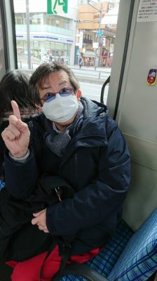 怪しいおじさんが乗るバスは 何故か 可愛らし