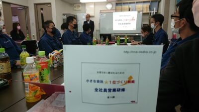 今回のテーマの一つが“強みを生かす経営”でしたので 振り返りもその点について且つ自社(関西金属製作所)についての気づきをは班ごとに発表していきました。皆さん関西金属製作所の“強み”についてのスラスラと出てきたのには驚きました、これは普段から意識していなければ出てこないことです!