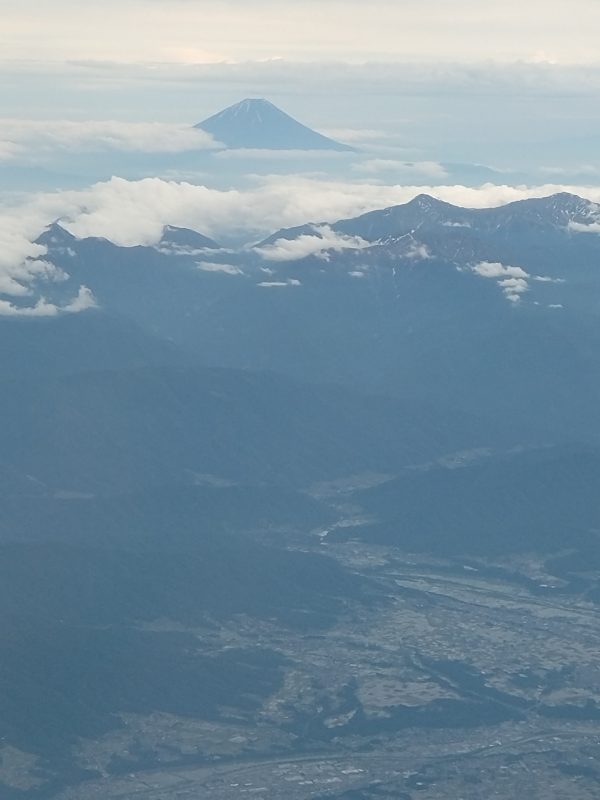 帰りは いつもは東海道新幹線側から見る富士山ではなく 日本海側からの富士山を望むことができ、また上空から大阪城も見物できました。