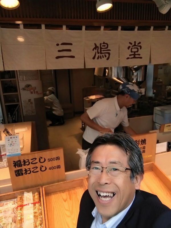 私が浅草寺に参拝する早朝はまだほとんどの仲見世商店街のお店は開いていないのですが、唯一AM6時30分頃から営業されているお店があり、そこで今回もスタッフへのおみあげを購入することが出来ました。お店の大将からは「お客さん 朝早いですね~」と言っていただき、おまけをいただきました(早起きは三文の得ですかね?!)